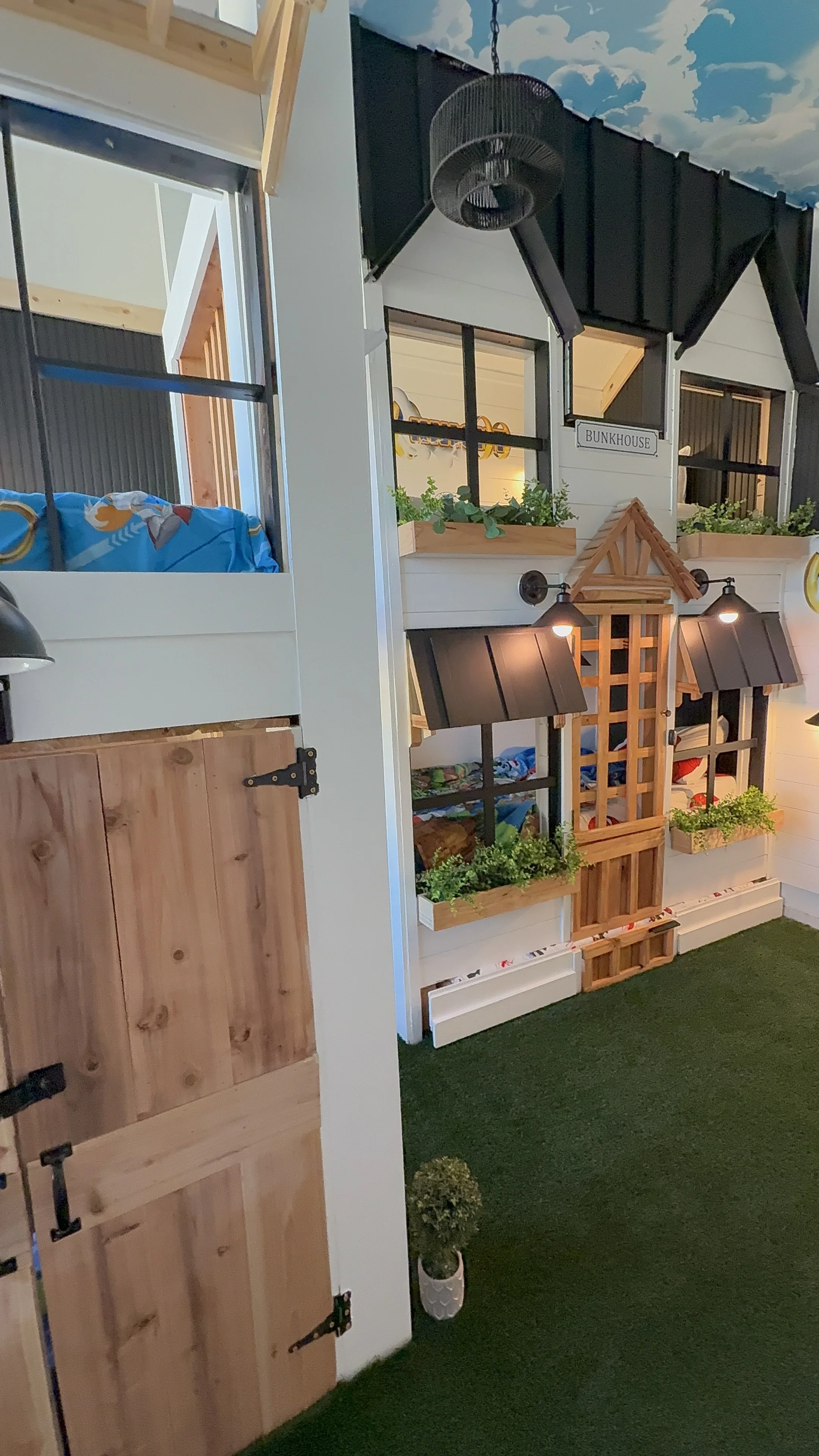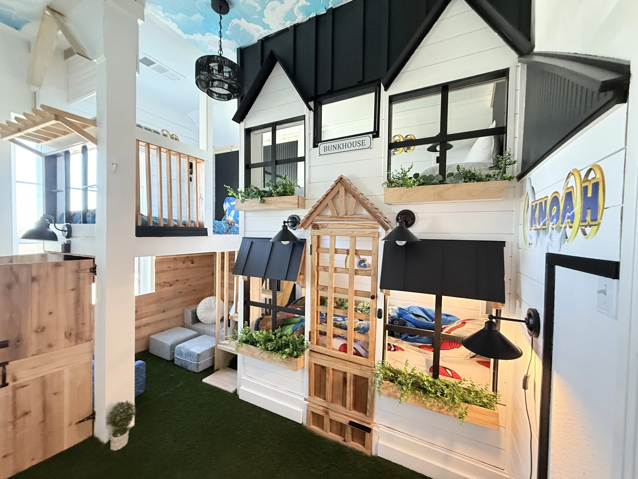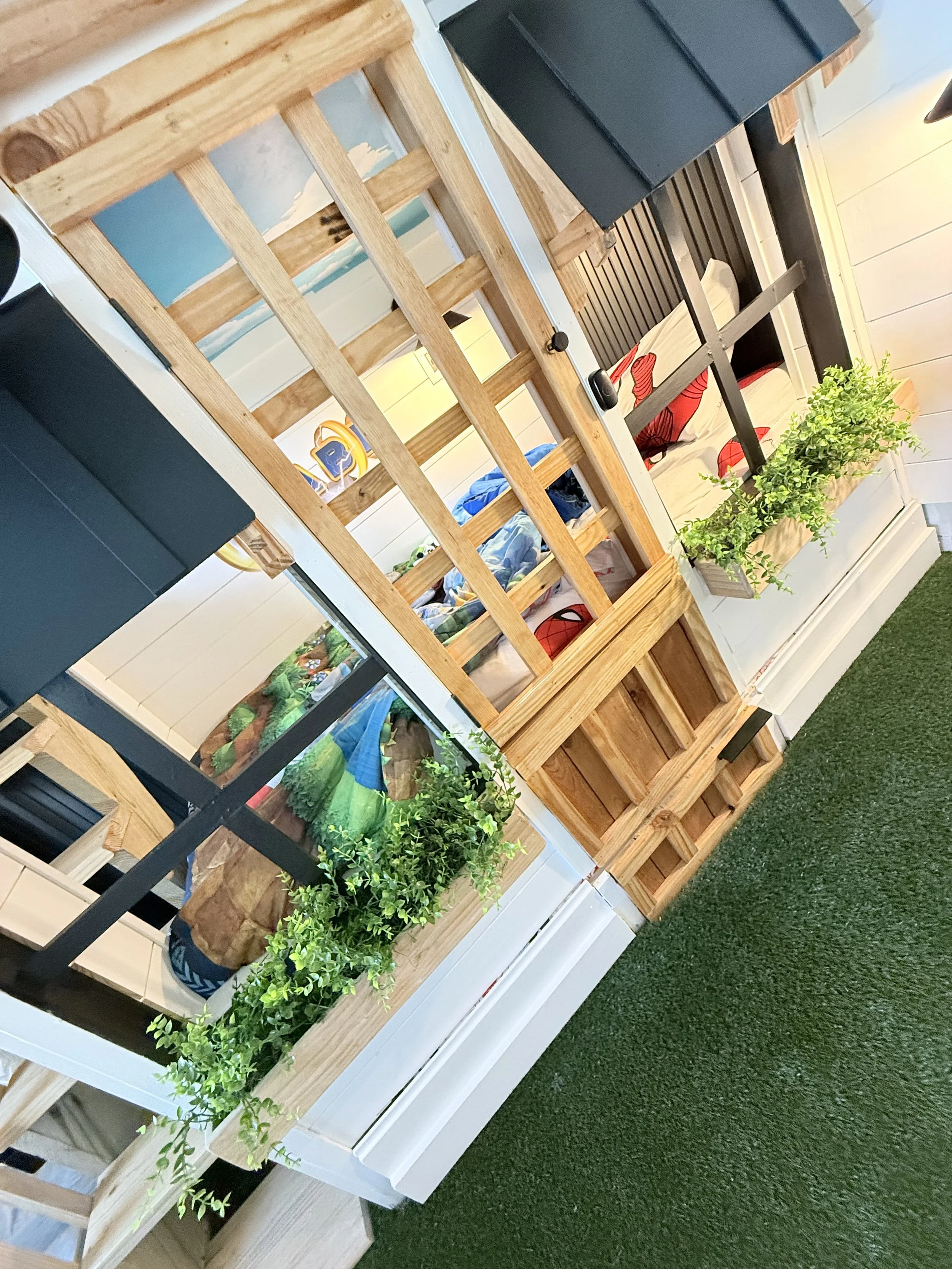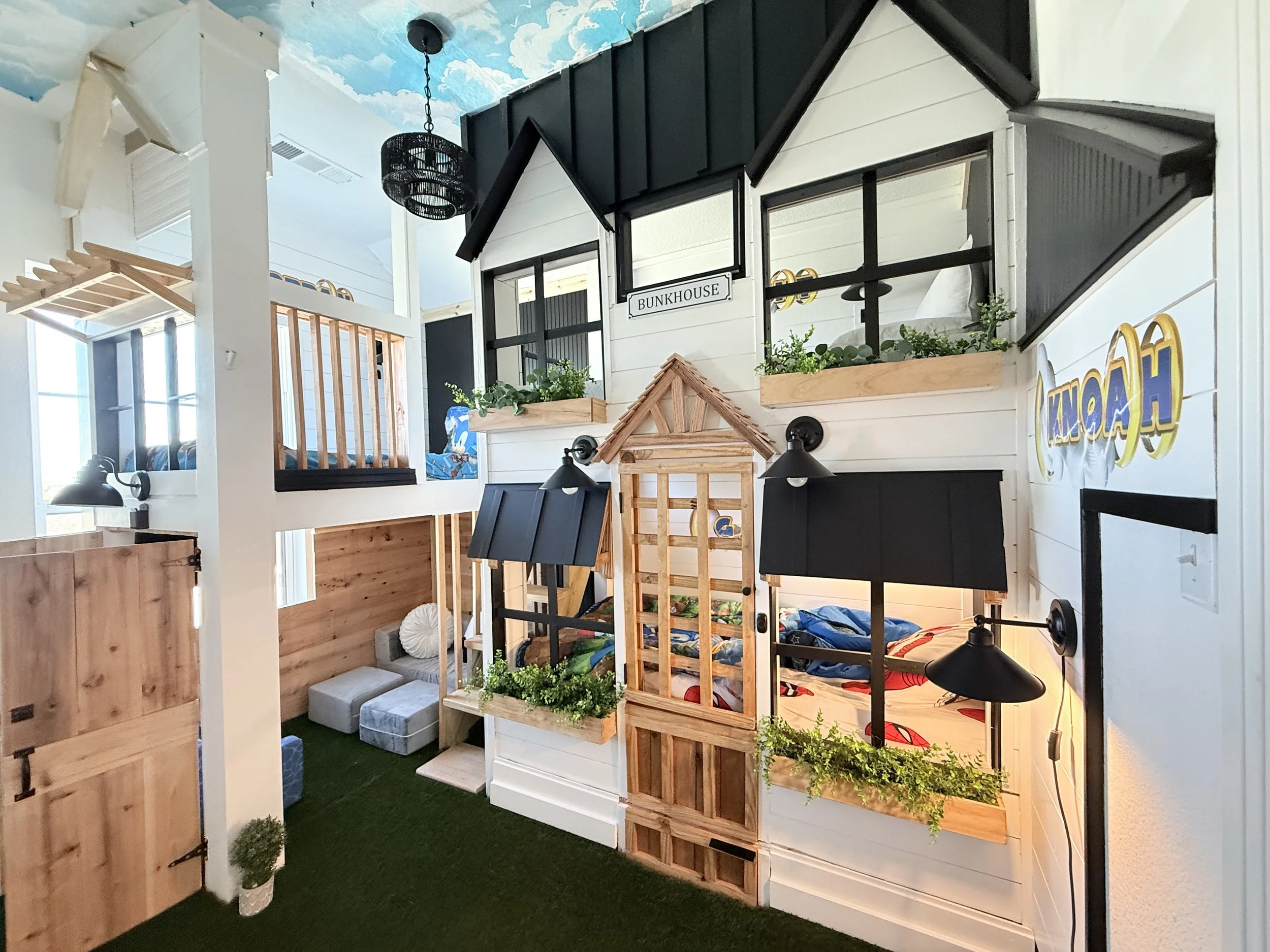Created a custom farmhouse bunk bed for four energetic grandsons brings a unique opportunity to blend functionality with creativity. This project is more than just providing sleeping space; it’s about crafting an imaginative haven that encourages friendship, fun, and playful adventures.