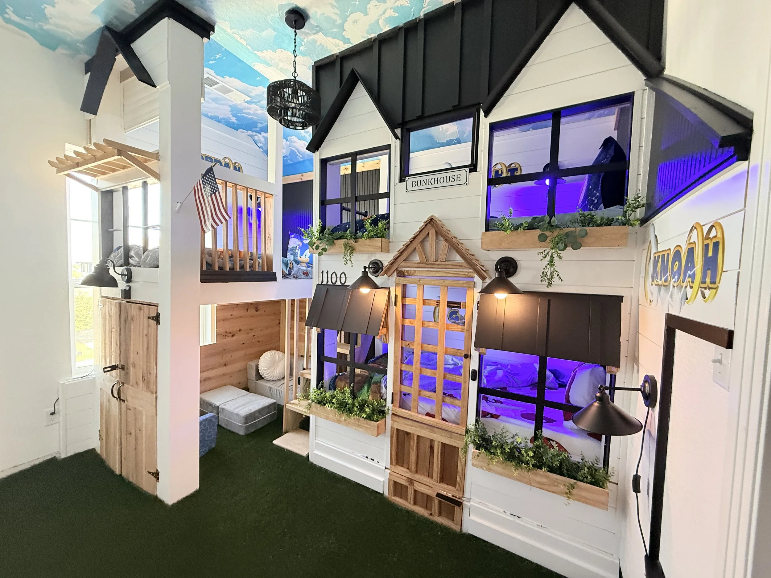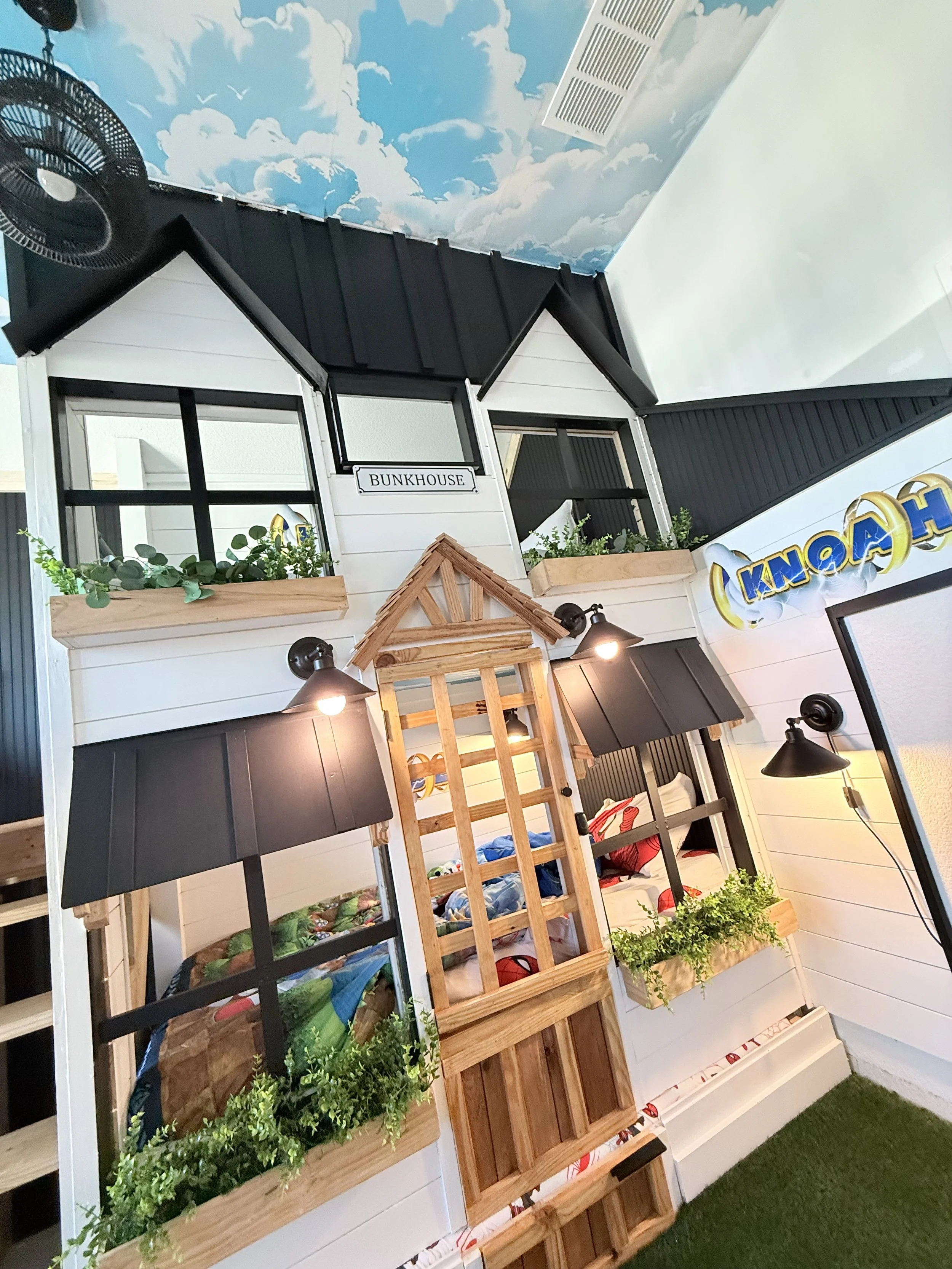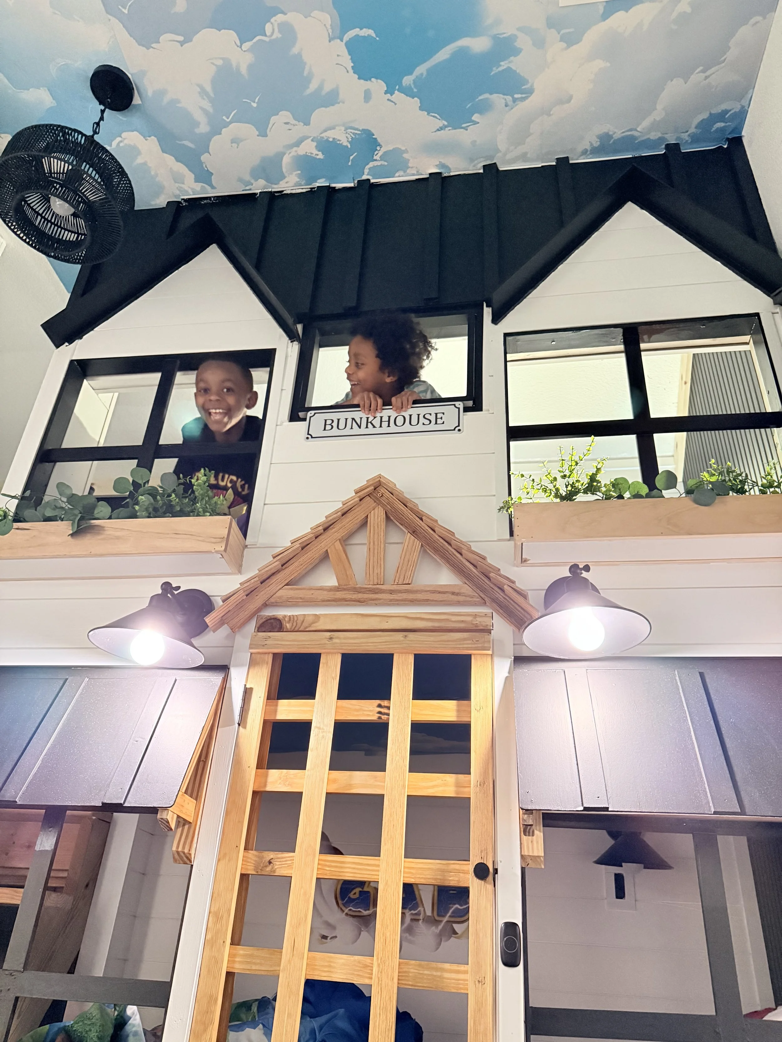Created a custom farmhouse bunk bed for four energetic grandsons brings a unique opportunity to blend functionality with creativity. This project is more than just providing sleeping space; it’s about crafting an imaginative haven that encourages friendship, fun, and playful adventures.