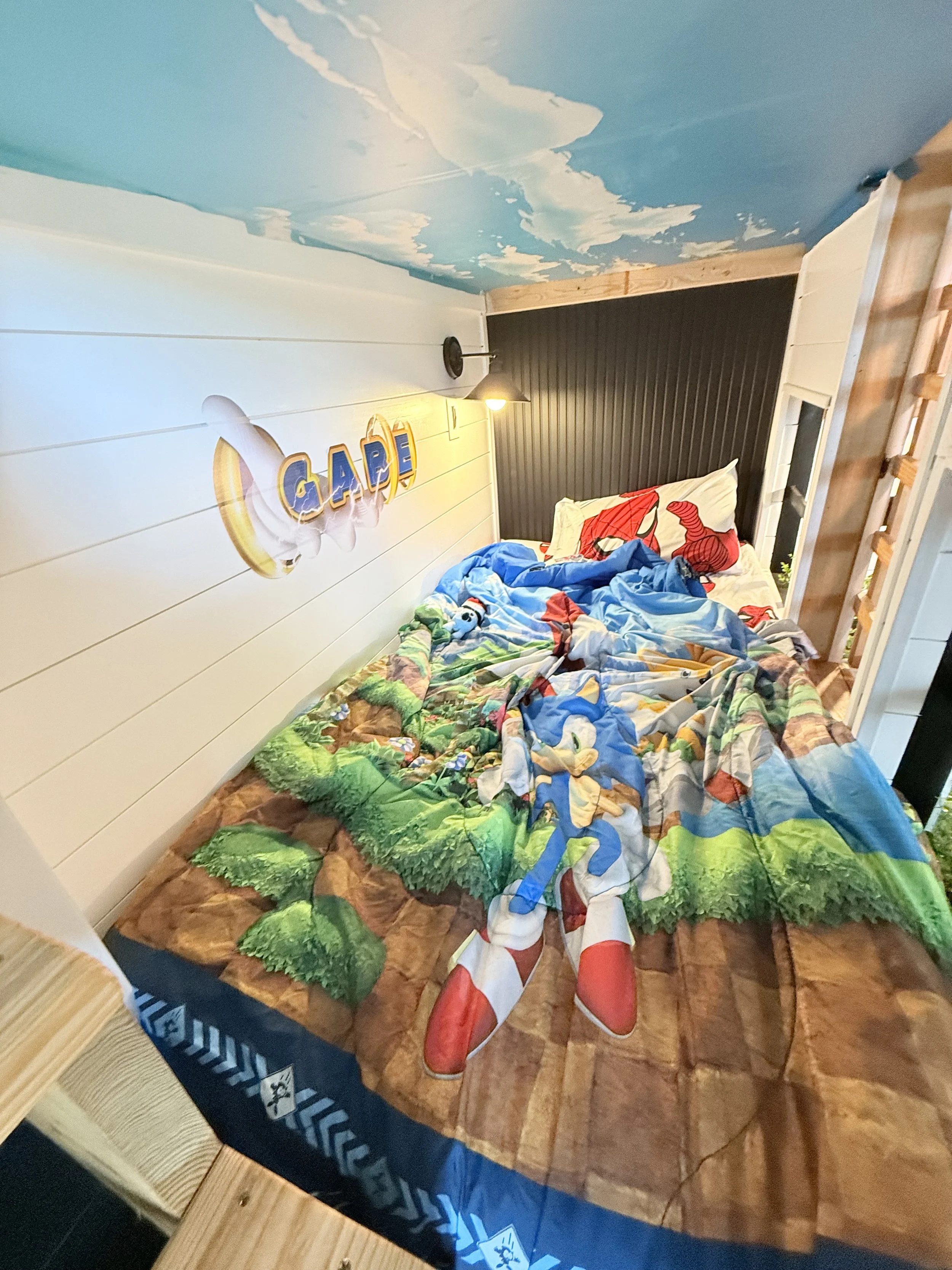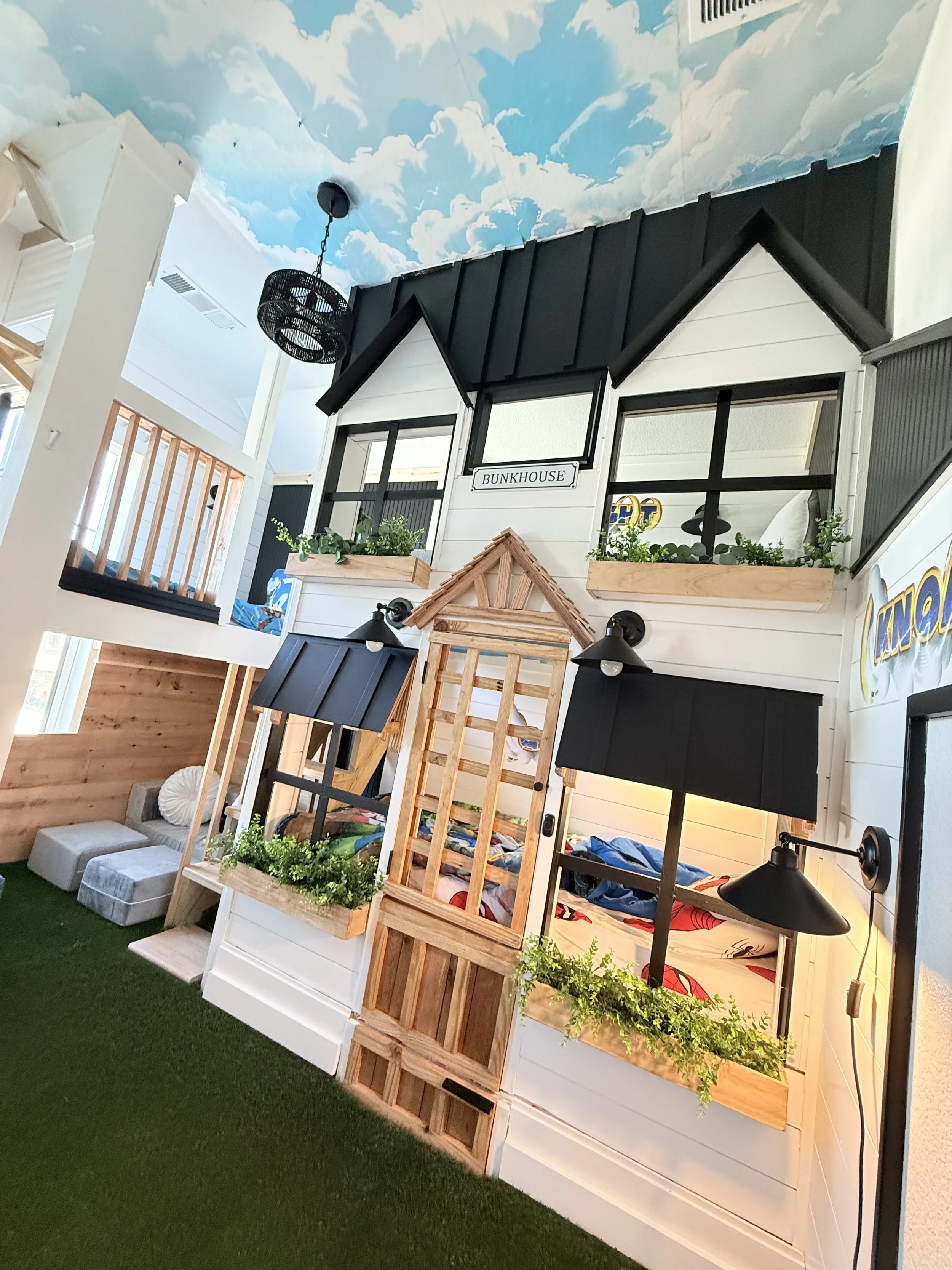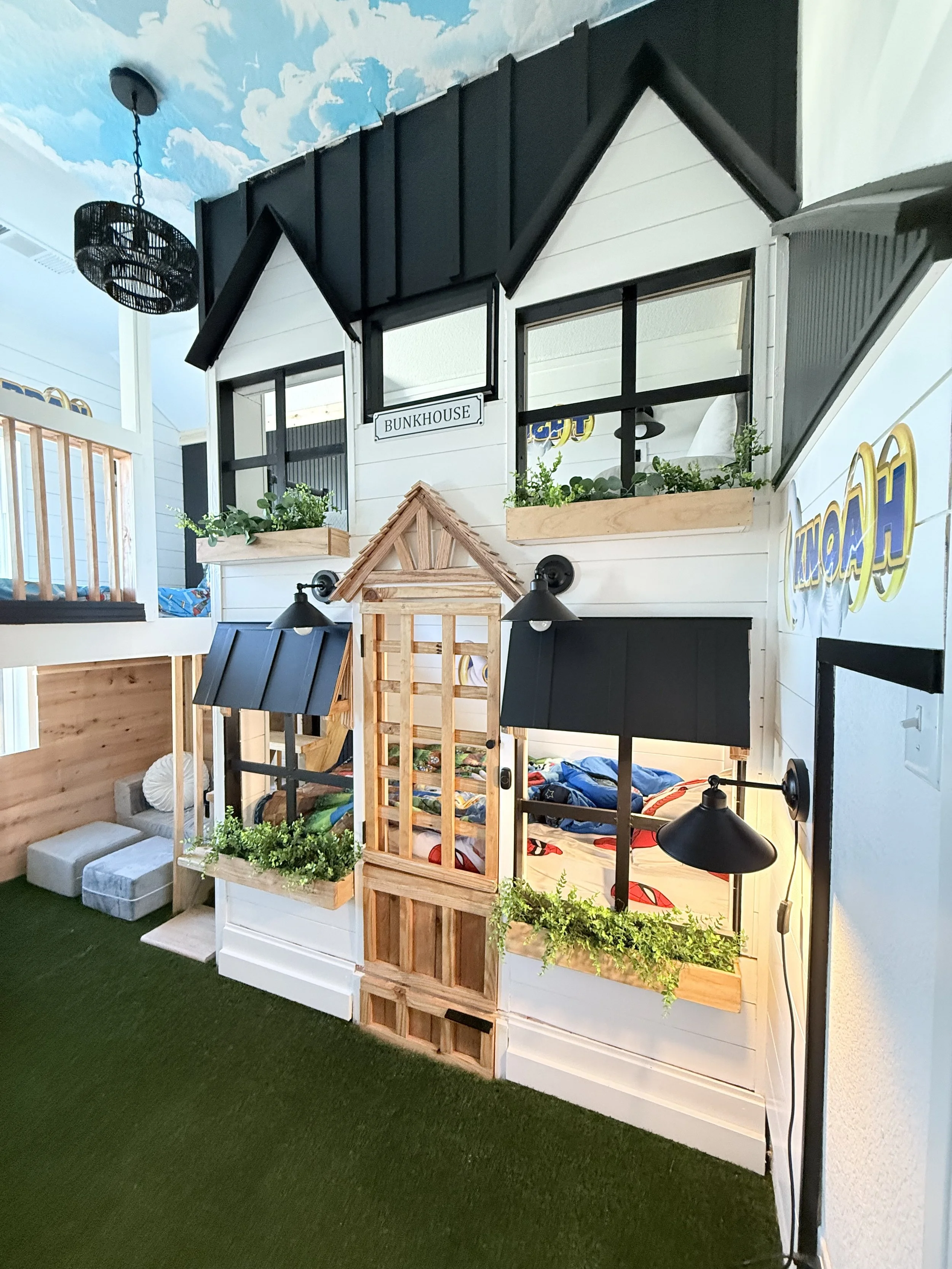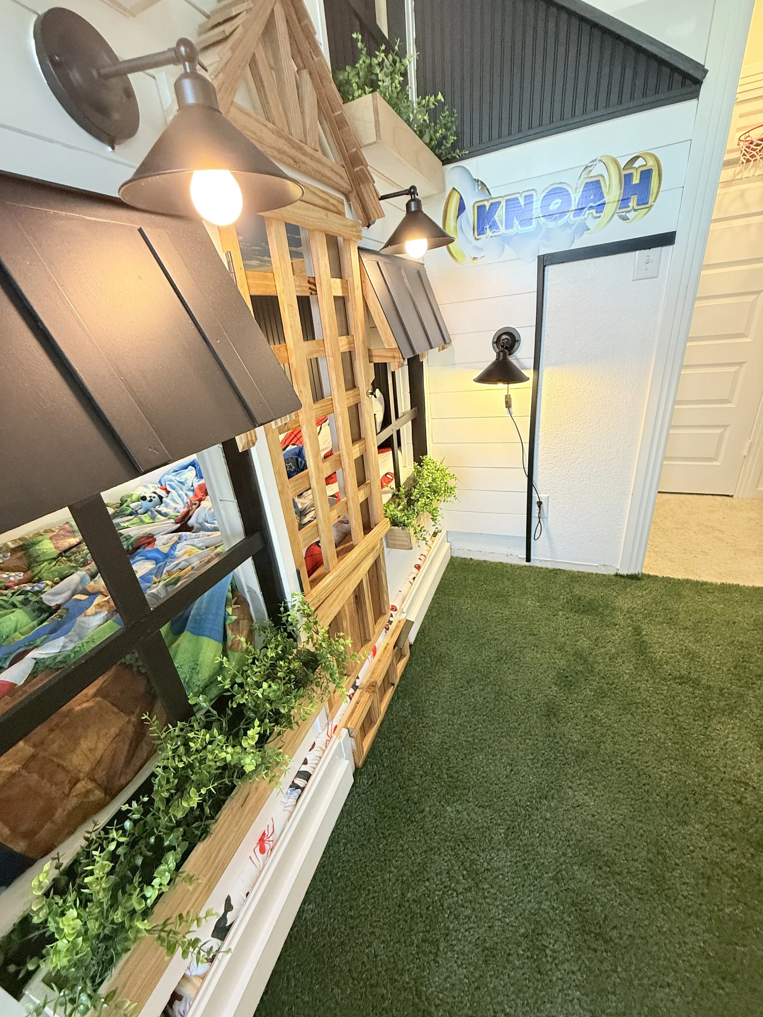 Created a custom farmhouse bunk bed for four energetic grandsons brings a unique opportunity to blend functionality with creativity. This project is more than just providing sleeping space; it’s about crafting an imaginative haven that encourages friendship, fun, and playful adventures.